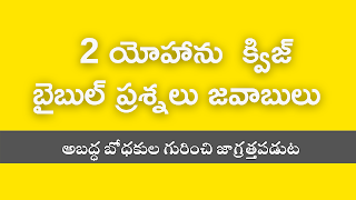 Home telugu bible quiz Telugu bible quiz questions and answers from 2 John Telugu bible quiz questions and answers from 2 John Author - personAuthor June 01, 2021 share 1➤ ఒక స్త్రీకి వ్రాయబడిన పత్రిక ఏది?👁 Show Answer=> యోహాను వ్రాసిన రెండవ పత్రిక (1:2,5,13),2➤ ప్రేమ అపొస్తలునిగా పేర్కొనబడినదెవరు?👁 Show Answer=> యోహాను Tags bible questionsbible quizbible quiz in telugubible quiz questionsbible quiz with answersbible trivianew testament bible quiztelugu bible quiz Facebook Twitter Whatsapp Newer Older